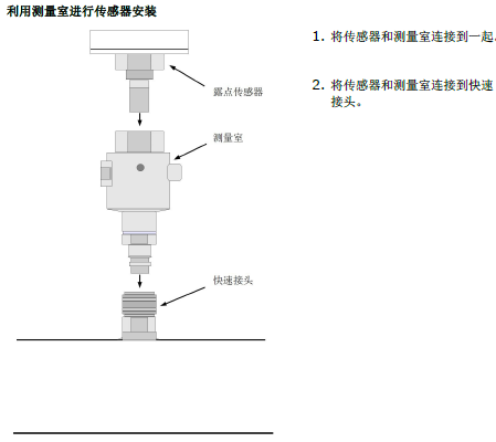 要正常测量露点气体必须流经传感器探头。这可以通过一个测量室来实现。对于不采用测量室进行安装的您需要考虑安装深度,下一章节会有详细描述。
