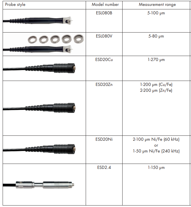 5,配合测量探头ESD20Zn测量锌,铜,铝等镀层在钢或铁上的厚度。尤其适合于在粗糙的表面测量。采用相位感度涡流方法允许非接触式的测量,例如对于引线的测量。