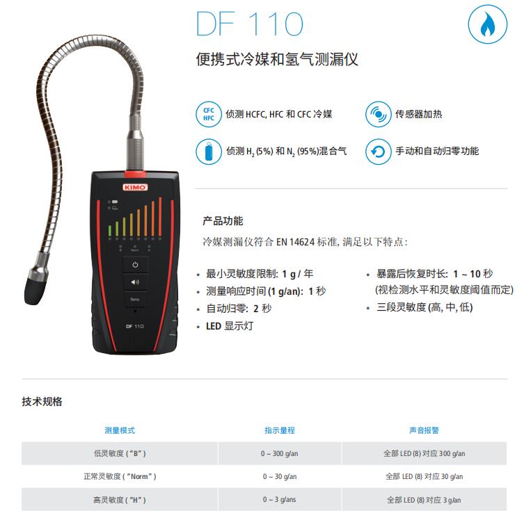 凯茂KIMO DF110 便携式冷媒和氢气测漏仪参数